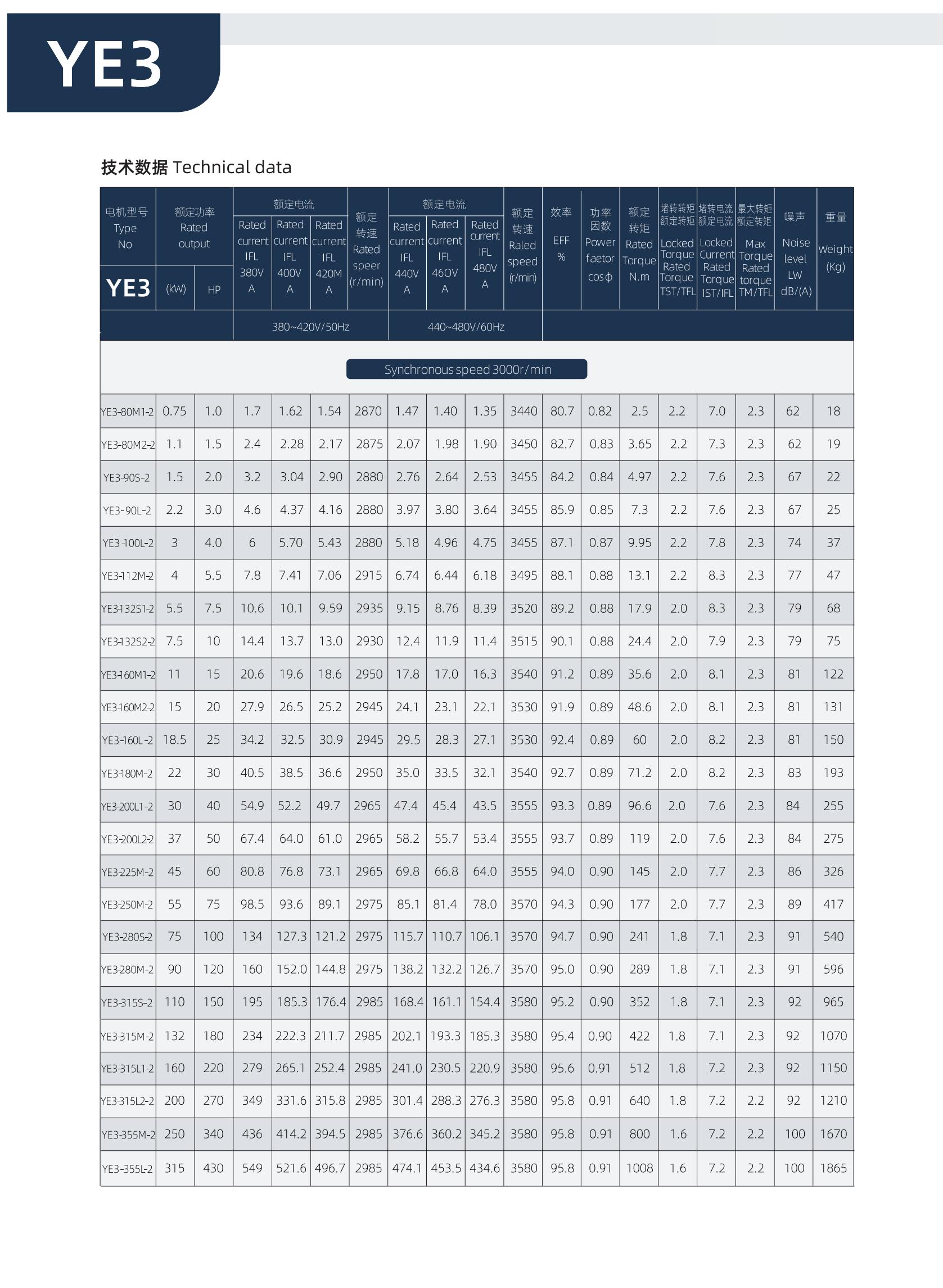 YE3B5三相異步電動機(jī)詳細(xì)介紹